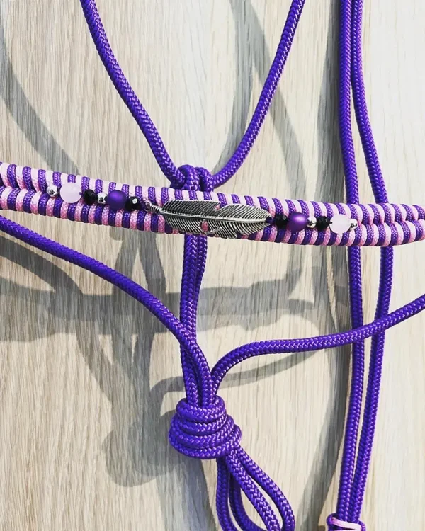 Licol éthologique – tressage épis & perles (corde 6 mm)
