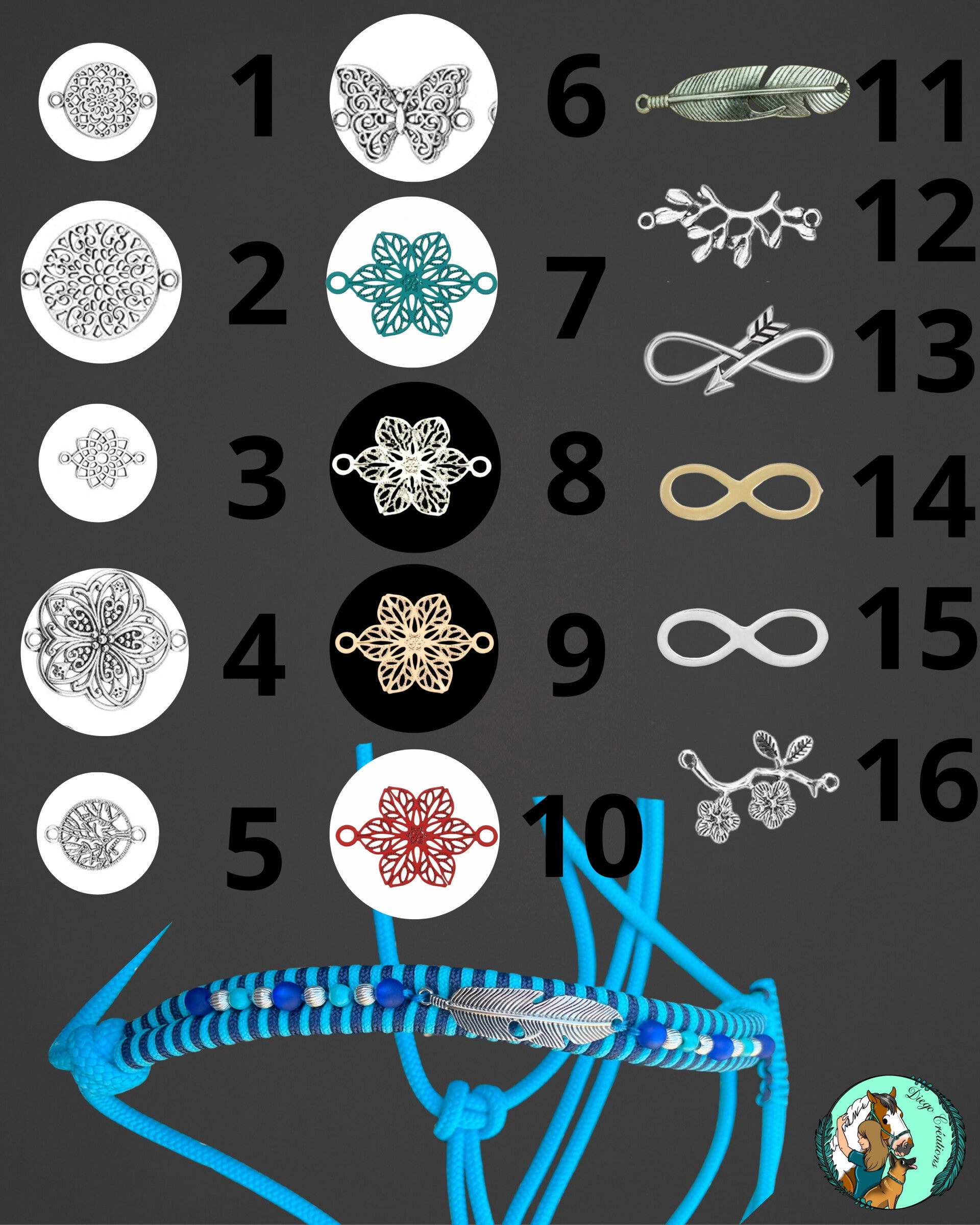 Ce modèle se distingue par son tressage décoratif sur la muserolle, réalisé dans un contraste harmonieux (ici bleu marine et beige), apportant une finition soignée et originale.